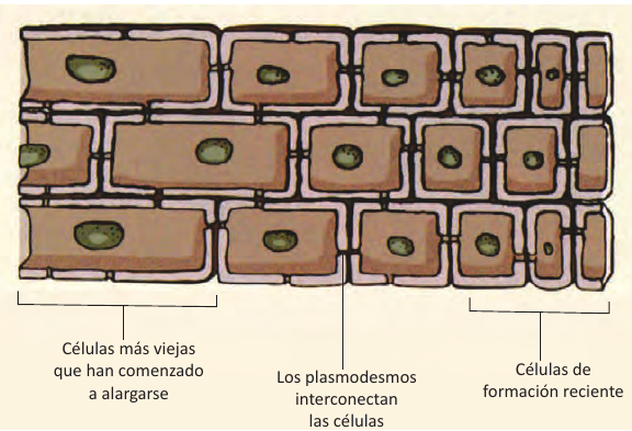 En las plantas el crecimiento ocurre, fundamentalmente, por alargamiento celular, en un proceso en el que la célula agrega nuevos materia les a sus paredes.